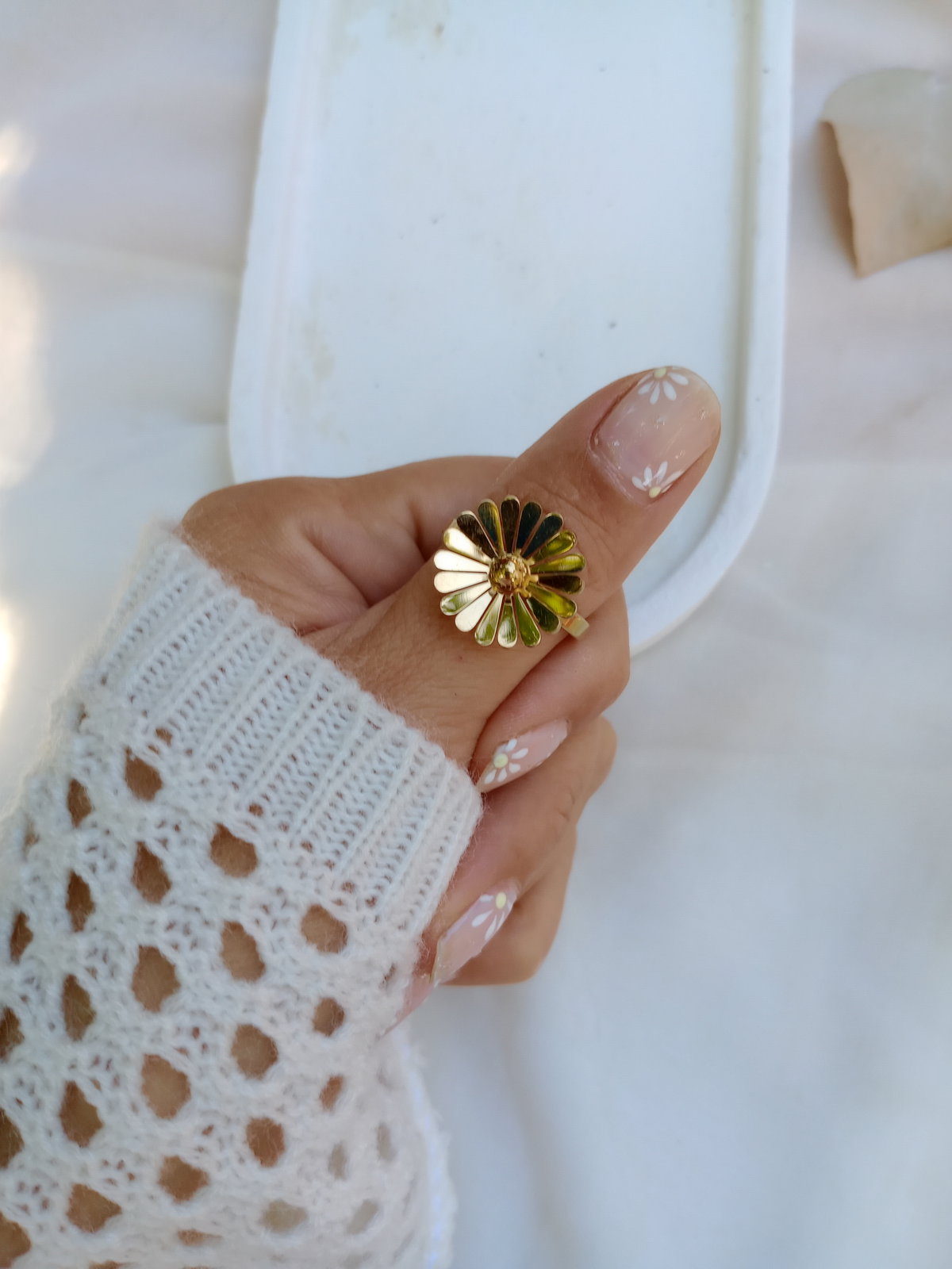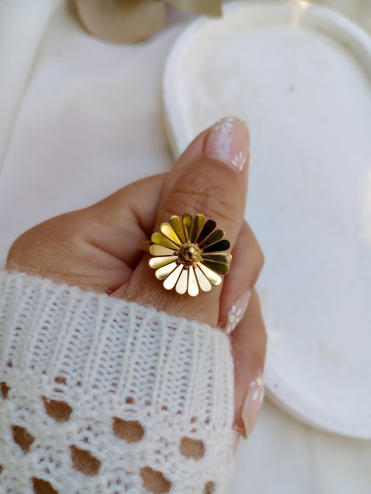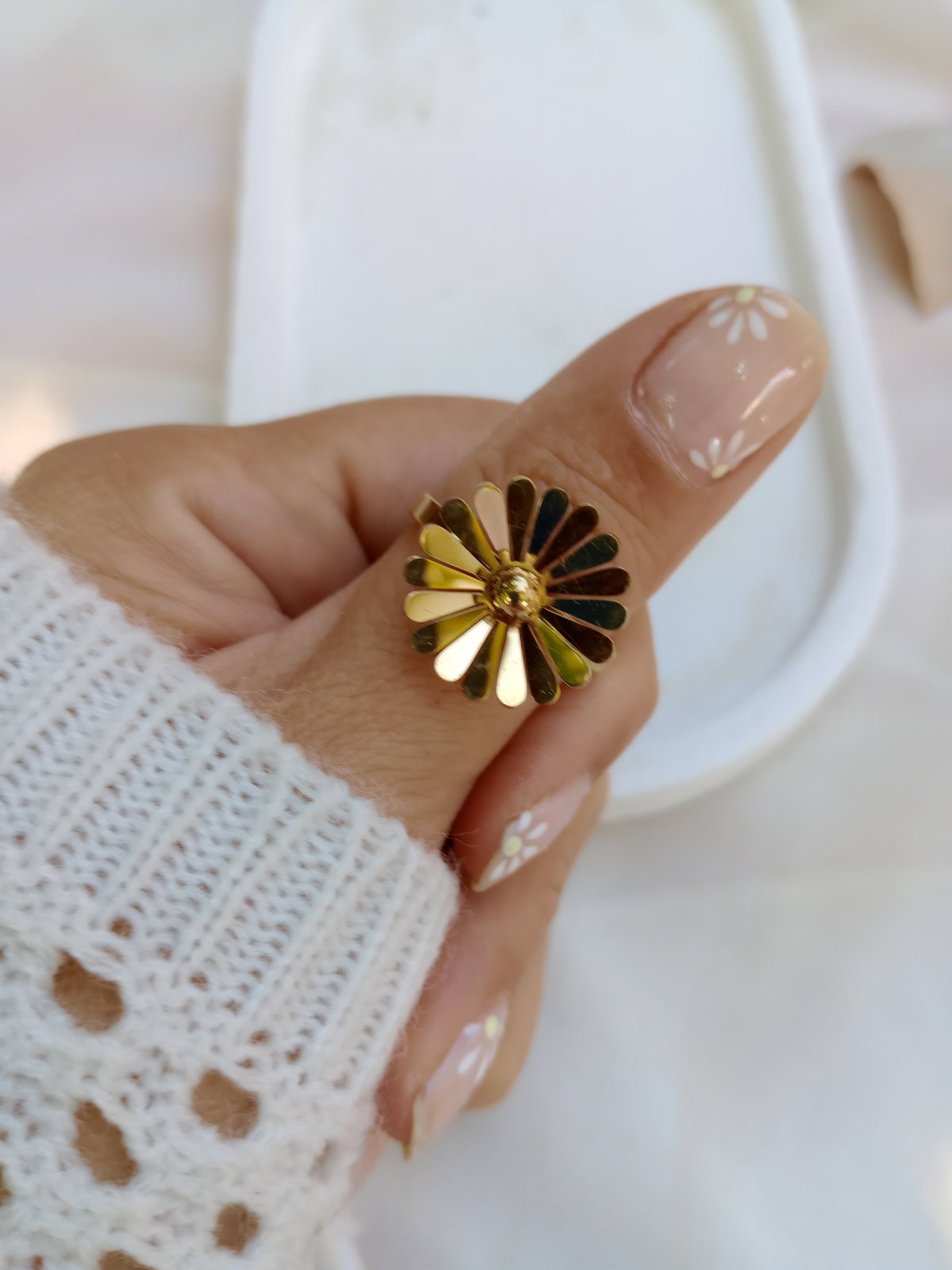 Anillo flor margarita en acero dorado ✨