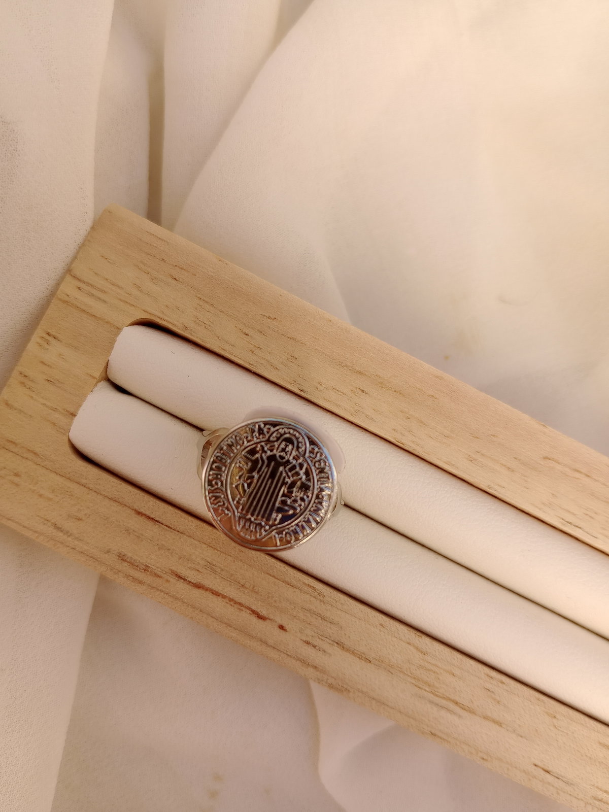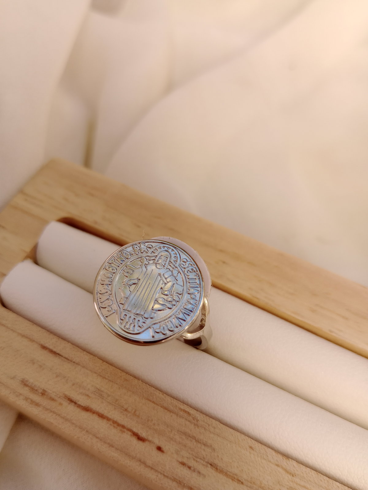 Llevá la protección de San Benito siempre con vos. Este anillo presenta las dos medallas originales: la medalla del Santo en un lado y la Cruz de San Benito en el otro, ambas en relieve. Elaborado en acero quirúrgico 316L, hipoalergénico y resistente al uso diario. Perfecto para regalar o para uso personal.