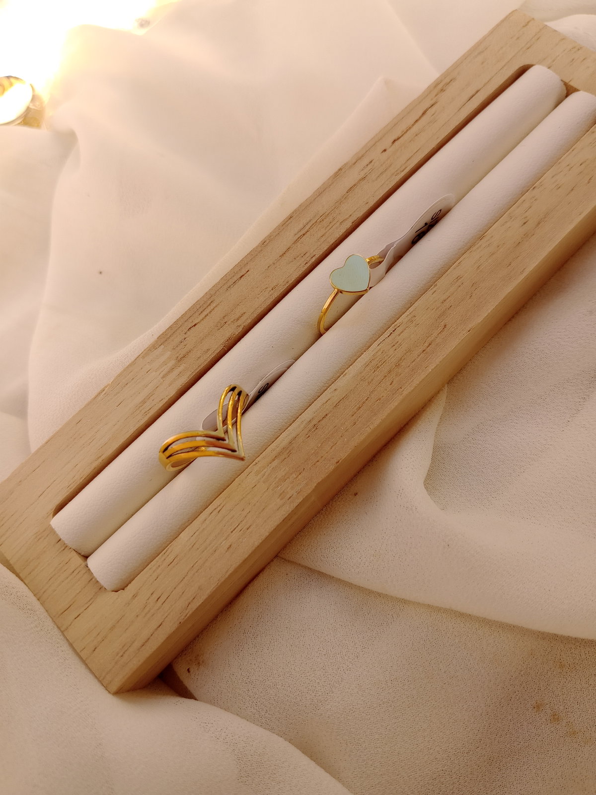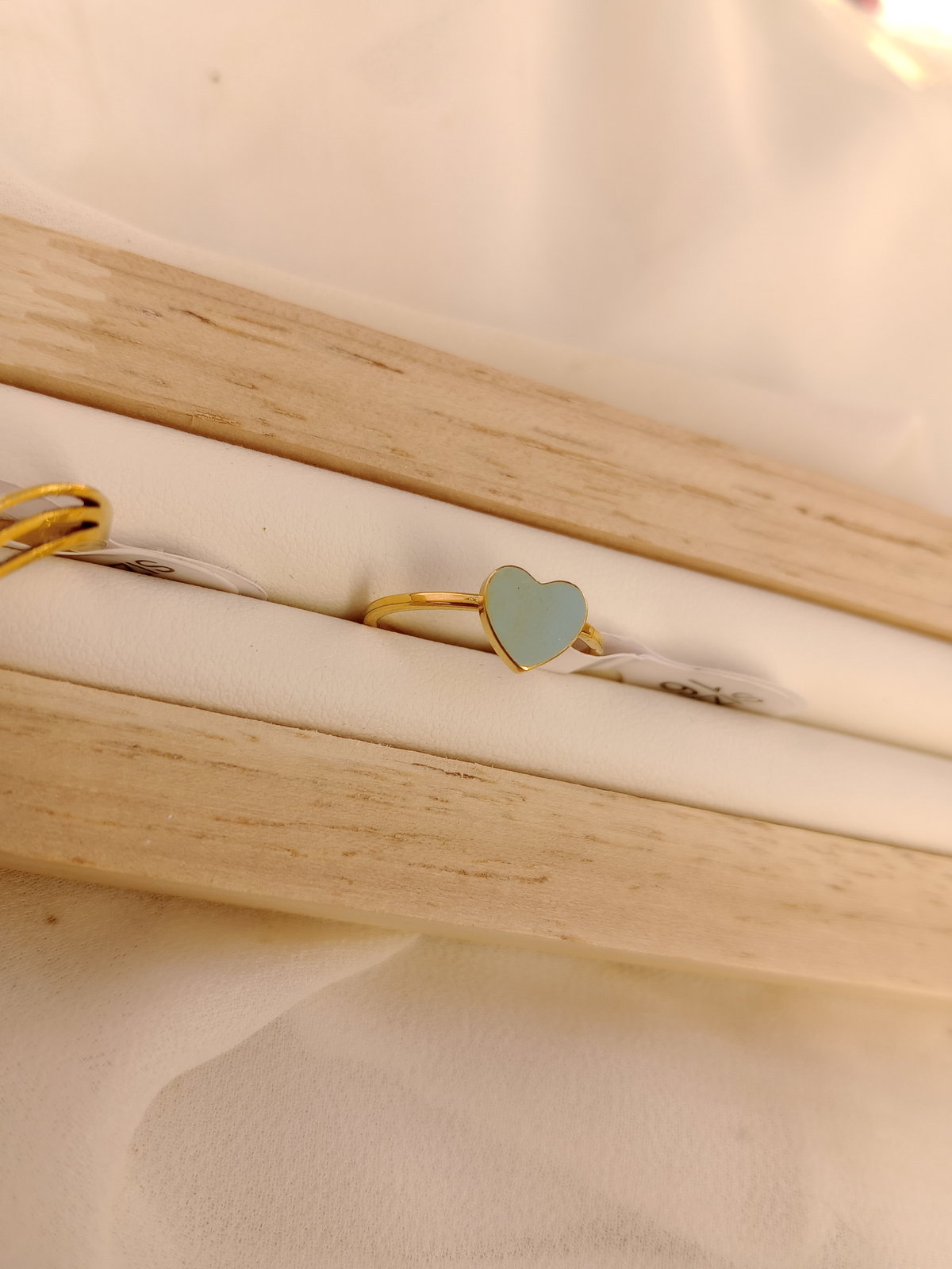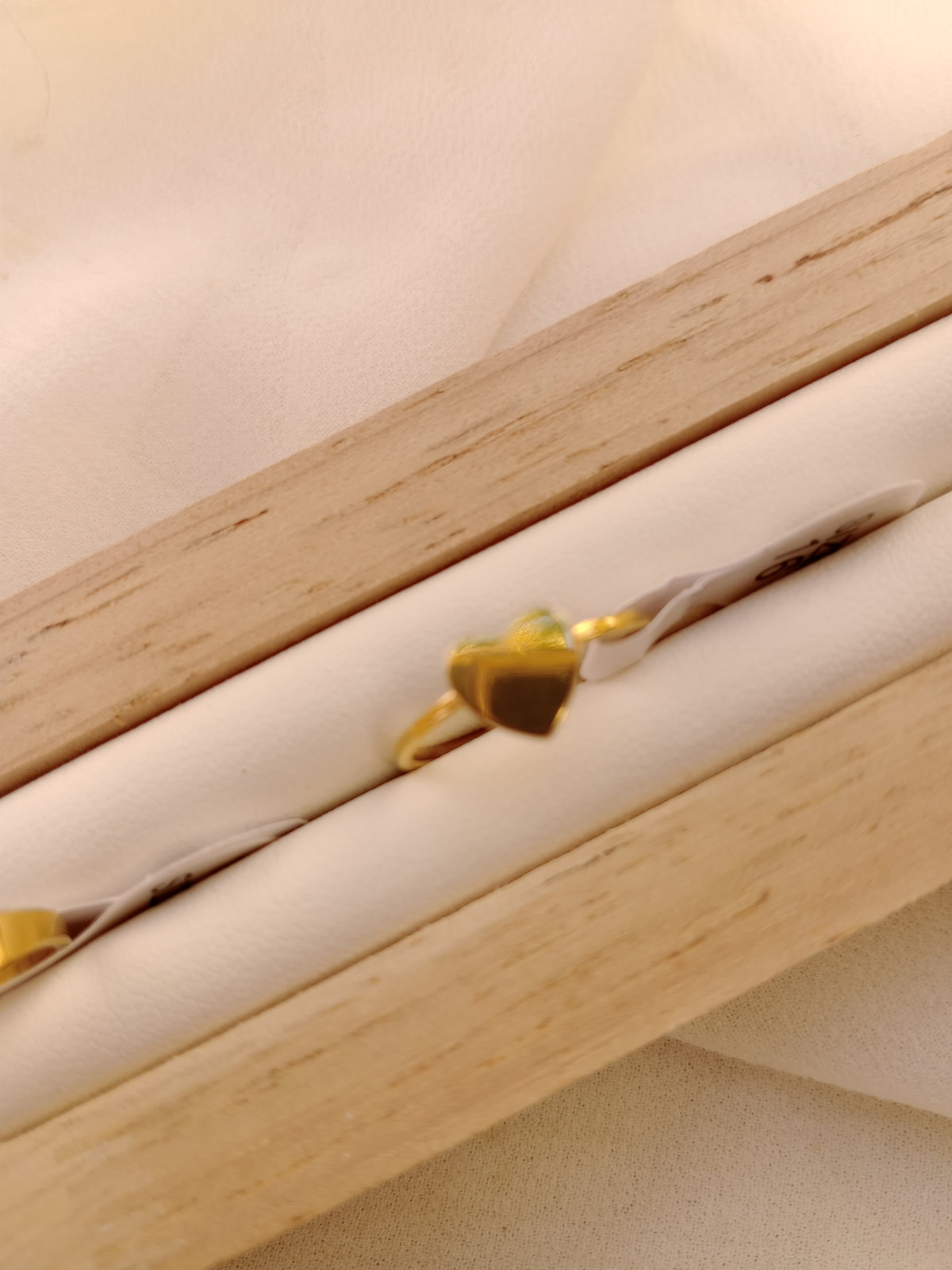 Corazón Dulce. Este anillo en acero dorado lleva un pequeño corazón como dije central — delicado, femenino y lleno de ternura.