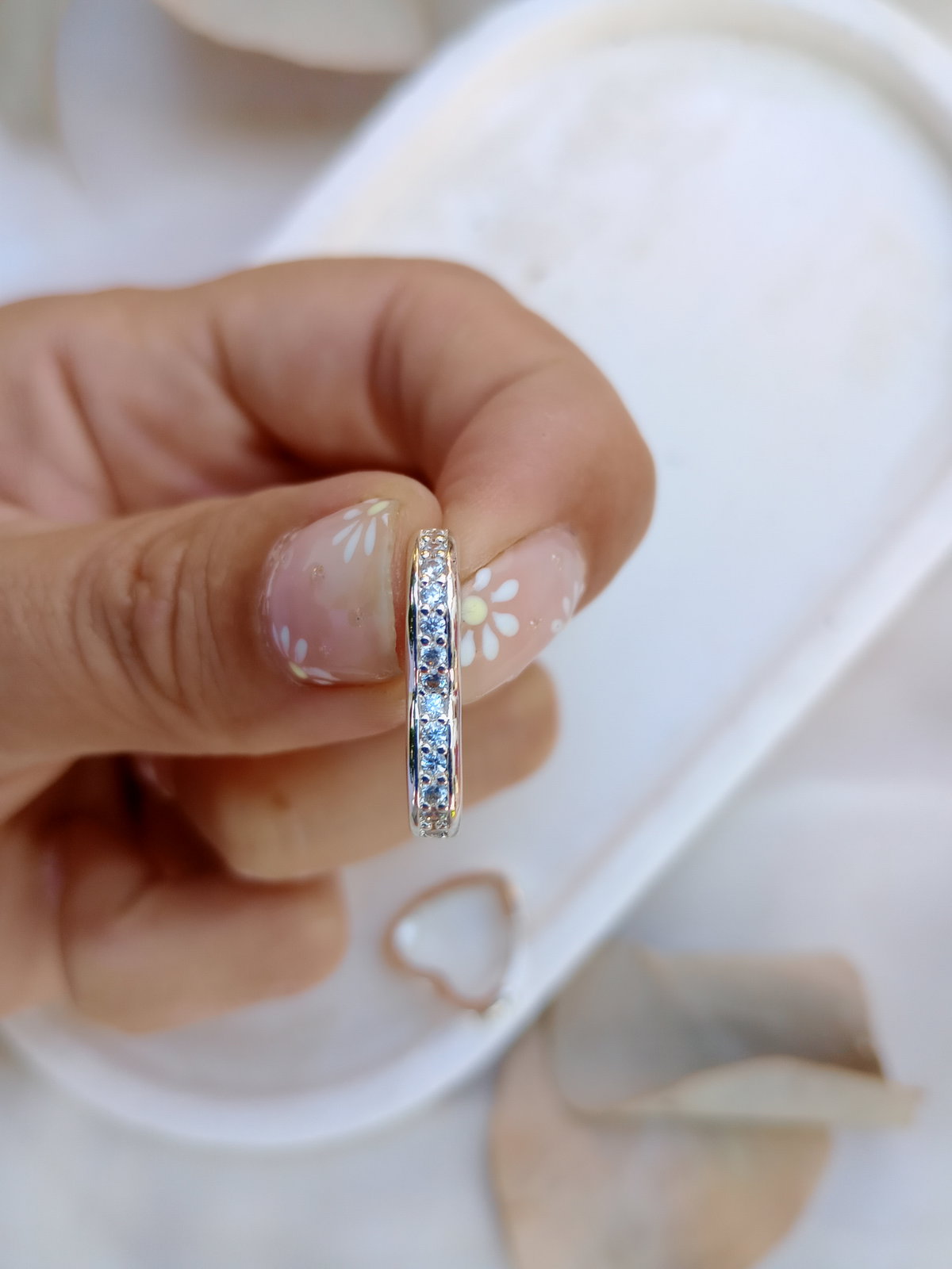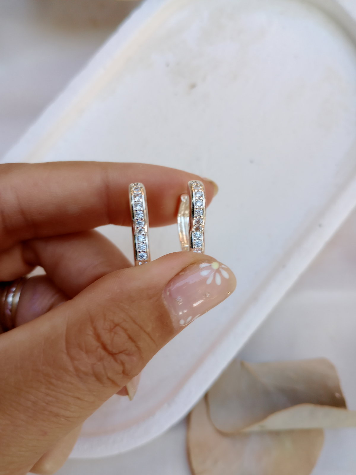 Argollas huggies con cristales blancos. Miden 20 mm aproximadamente