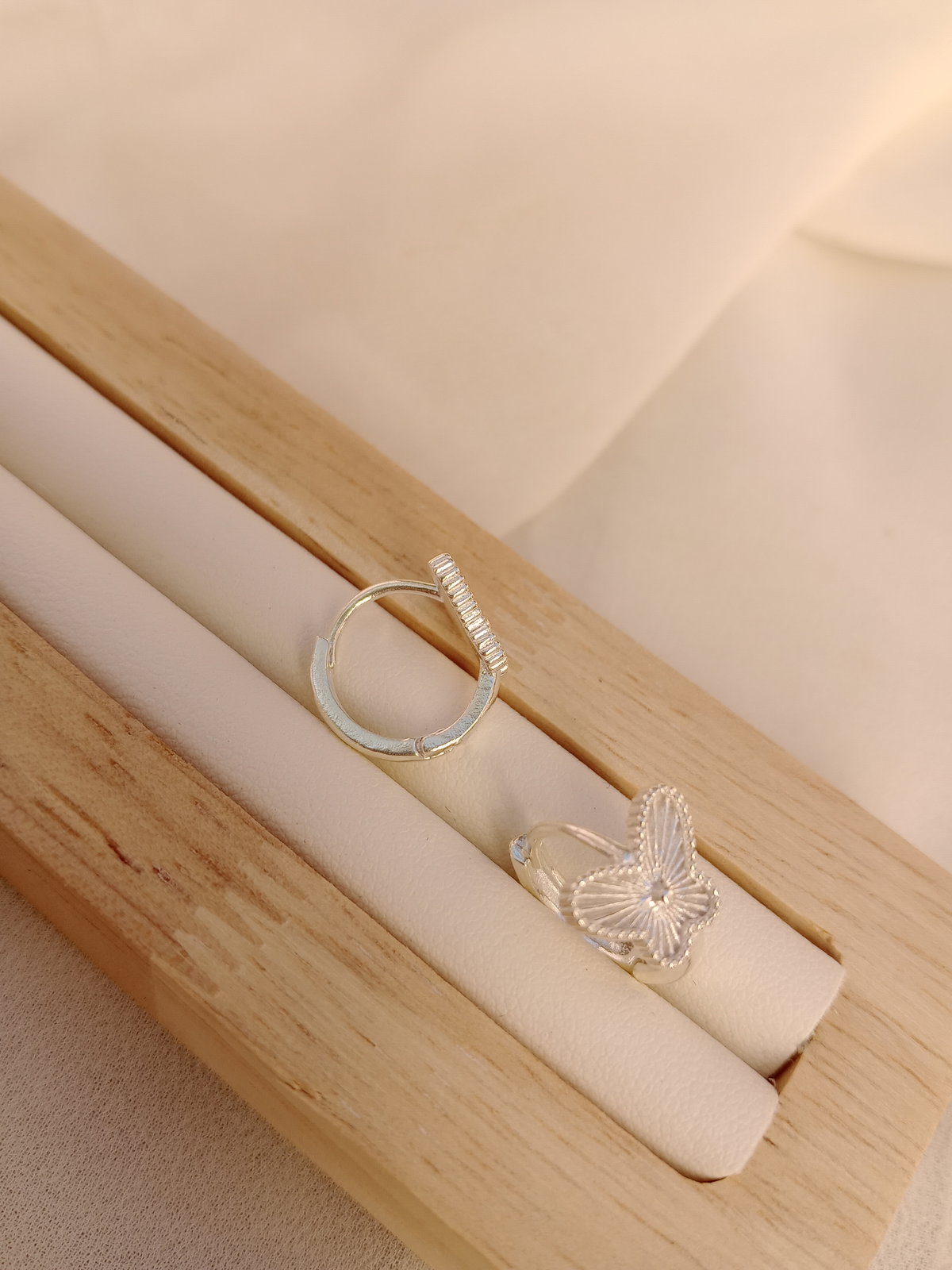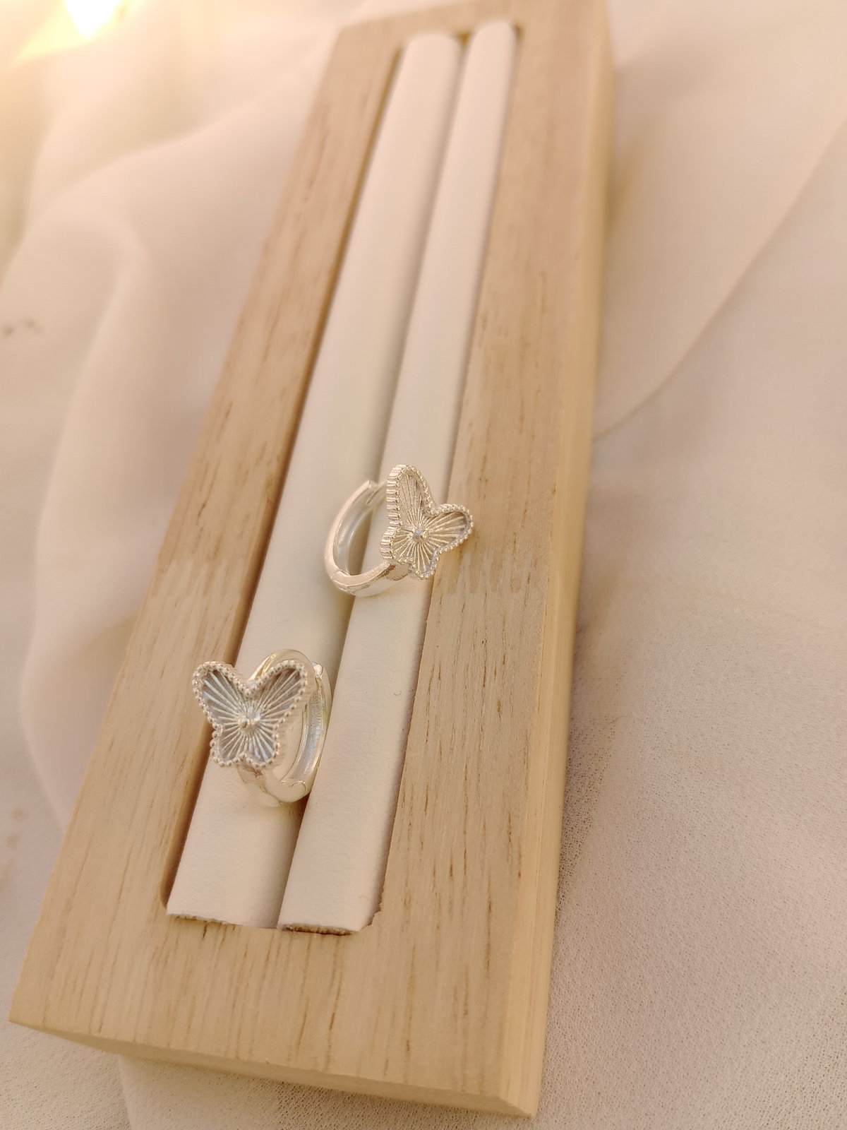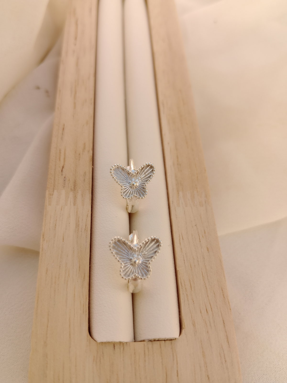 Delicados y con brillo real. Estos Huggies en plata laminada de 14mm presentan un diseño de mariposas que aporta movimiento y elegancia al lóbulo. Elaborados en plata laminada son hipoalergénicos y perfectos para quienes buscan una joya de calidad para el uso diario o para regalar. Un clásico con ese detalle especial que los hace únicos.