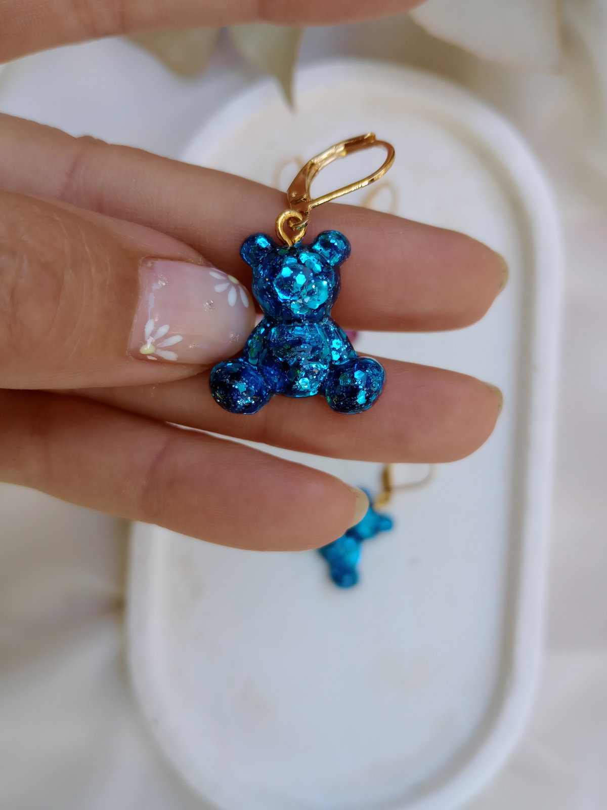 Aritos argollas con dije osito de resina. Colores según stock disponible 🩵