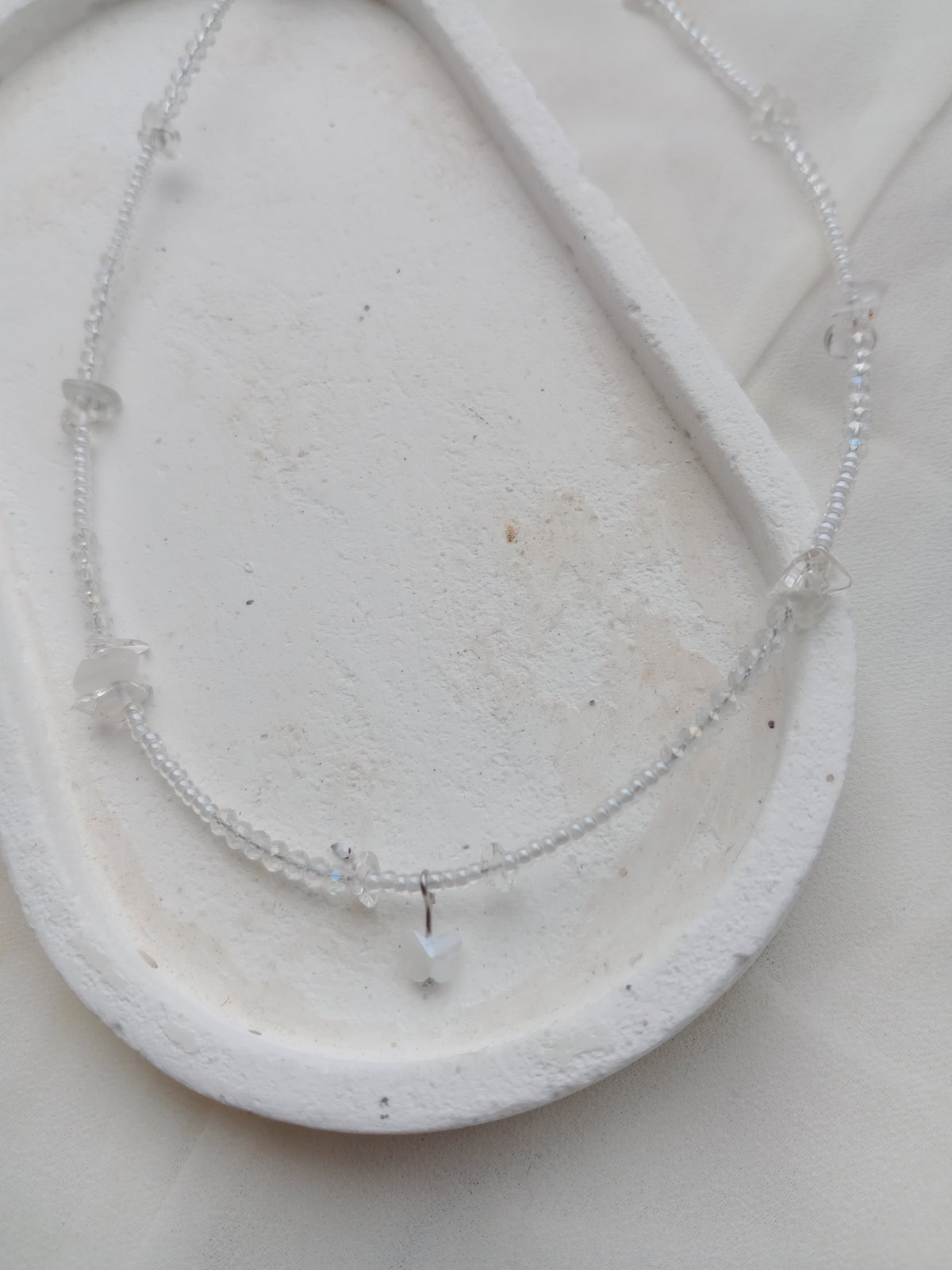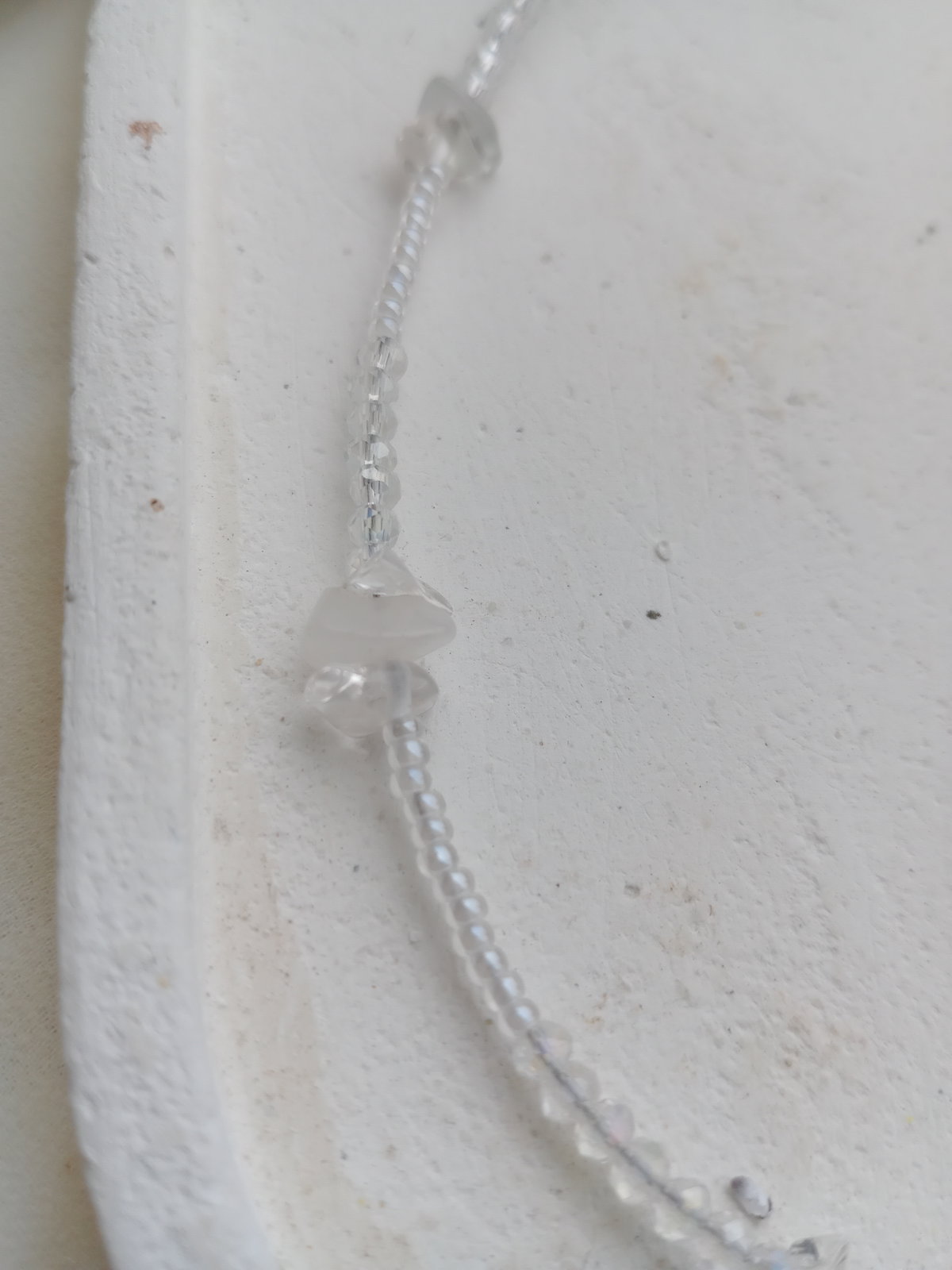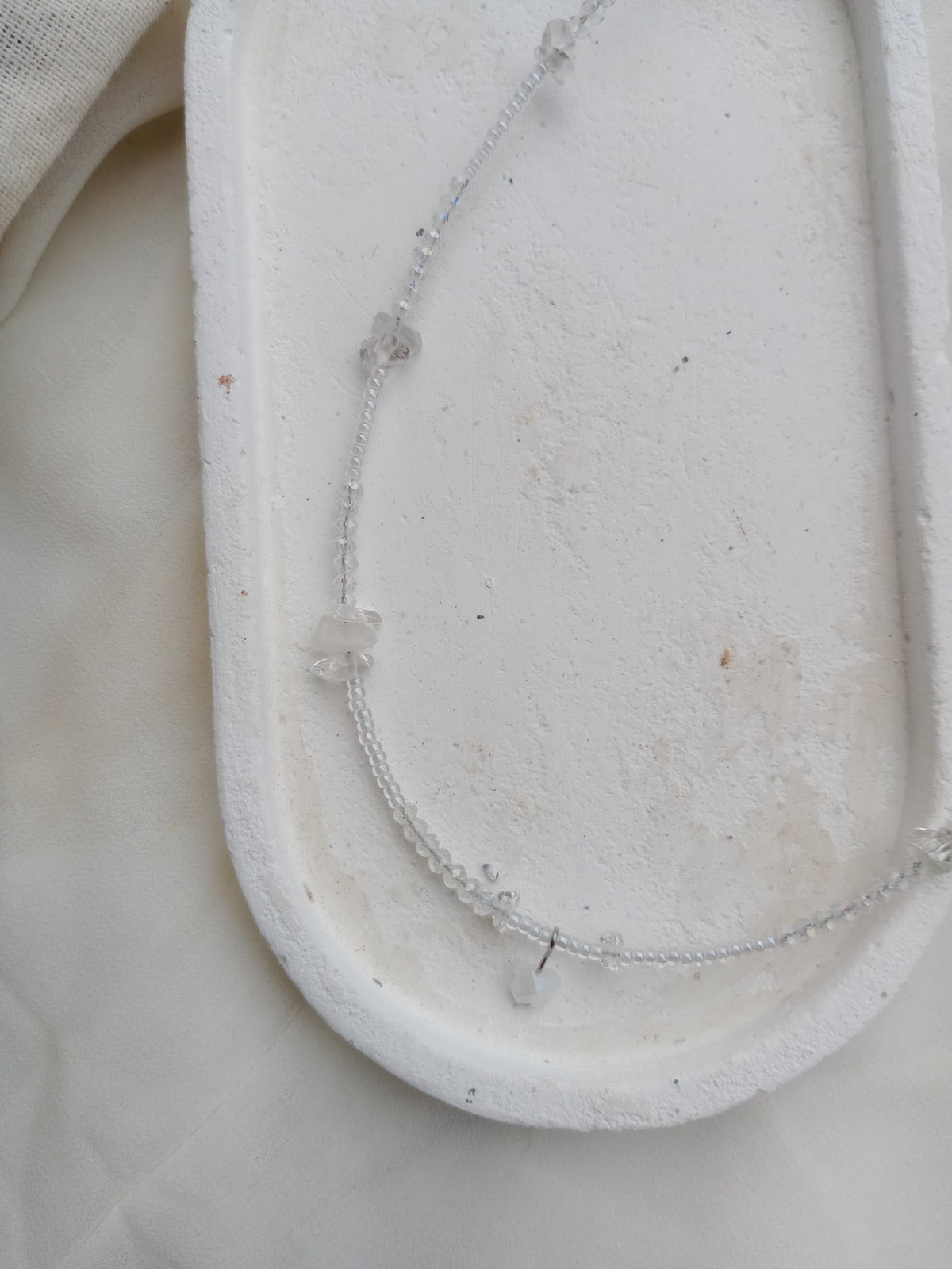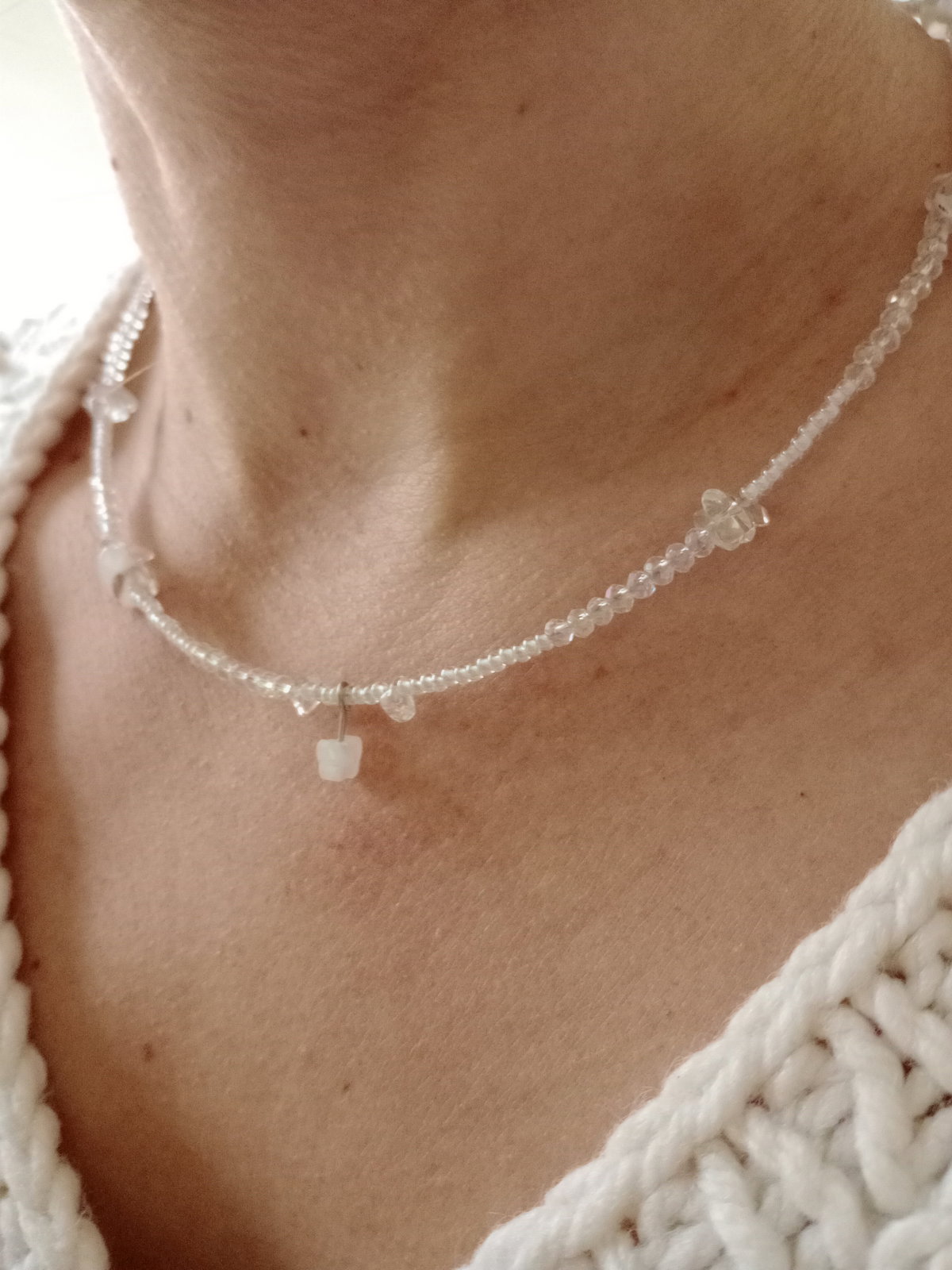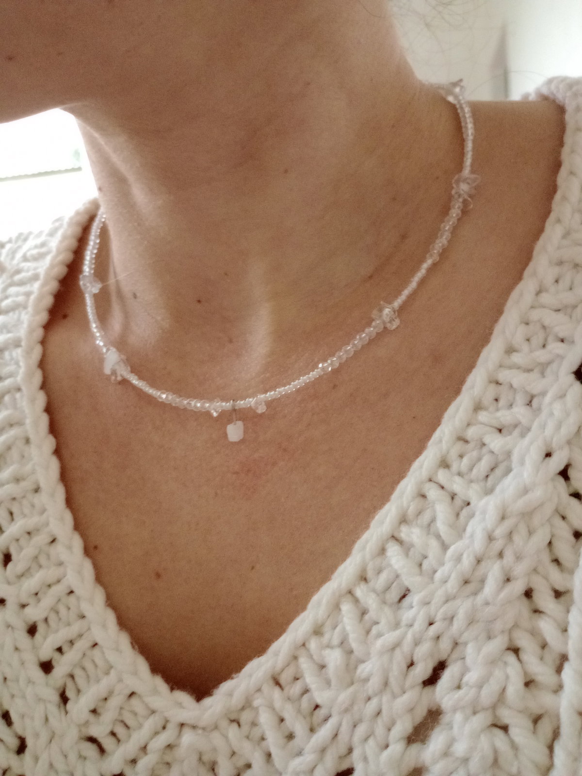 Clara es una joya perfecta para el uso diario. Elaborada en acero quirúrgico y piedras naturales claras, es hipoalergénica y resistente al desgaste. Su diseño minimalista y delicado la convierte en una pieza ideal para aportar luz, suavidad y equilibrio a cualquier look.