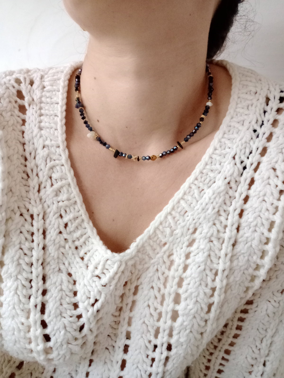 Fatima es una joya perfecta para el uso diario. Elaborada en acero quirúrgico y piedras naturales en tonos oscuros, es hipoalergénica y resistente al desgaste. Su diseño llamativo con detalles dorados aporta carácter y personalidad, ideal para destacar y sostener tu energía.