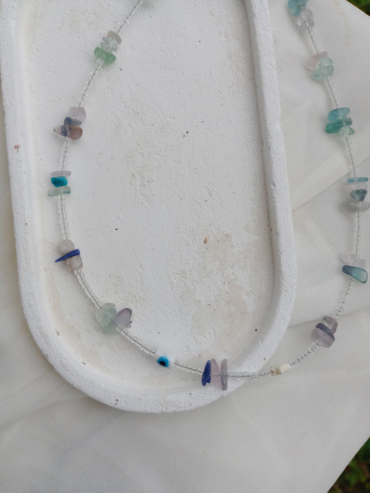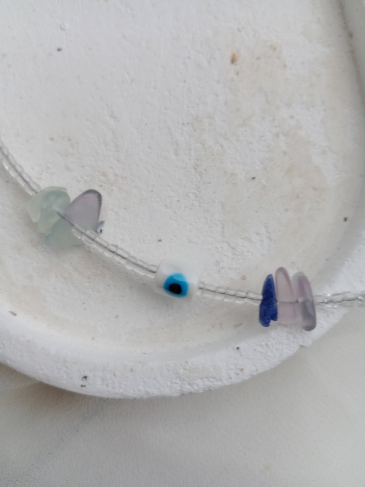 Material: Acero Quirúrgico 316L + mix Flourita, ojo turco cristales