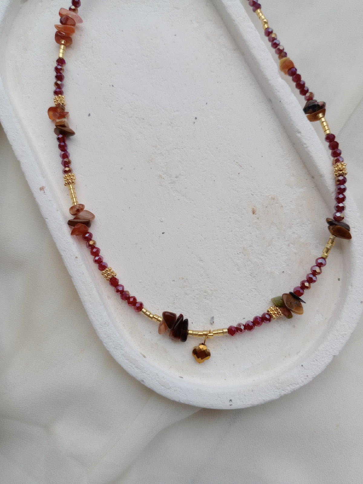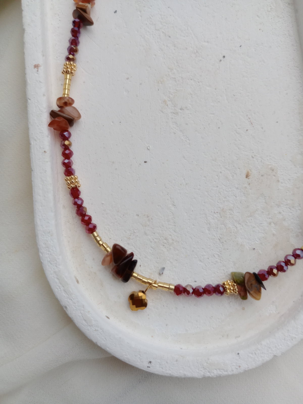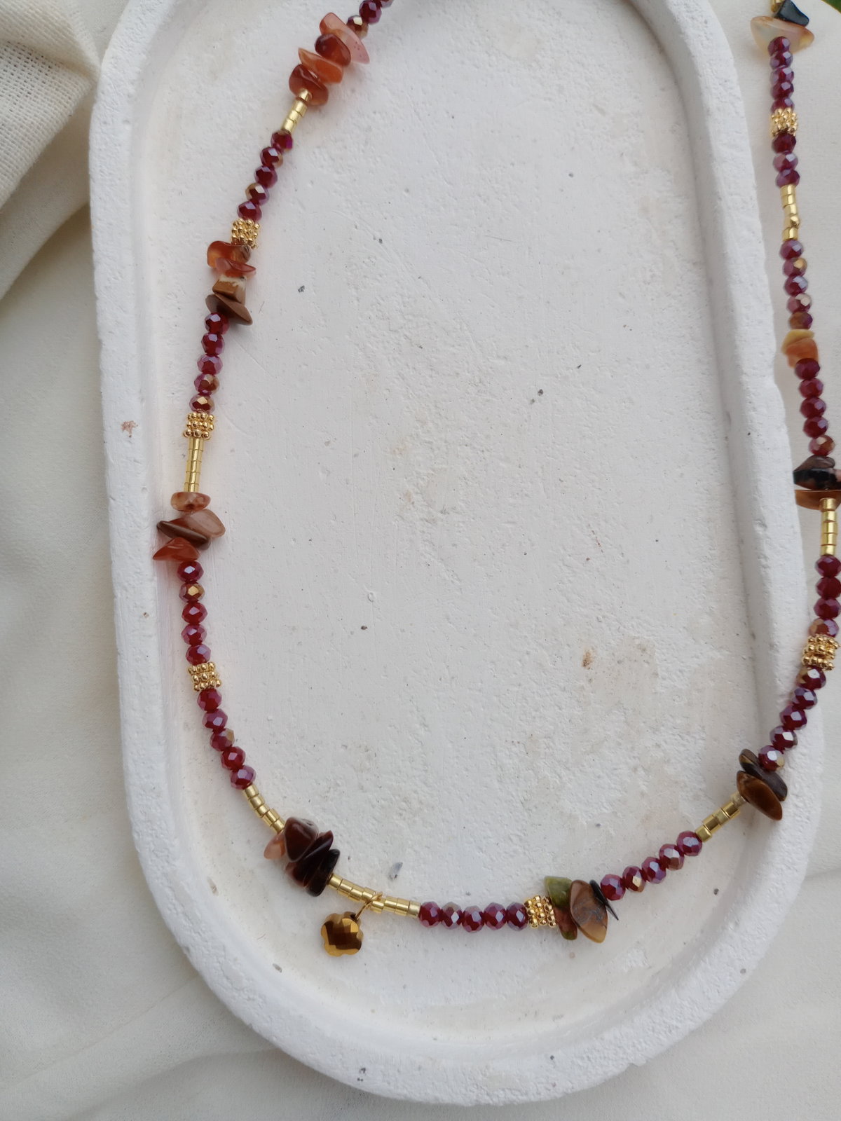 Material: Acero Dorado + piedras naturales Jaspe , Cornalina y turmalina(mix tonos tierra) + cristales