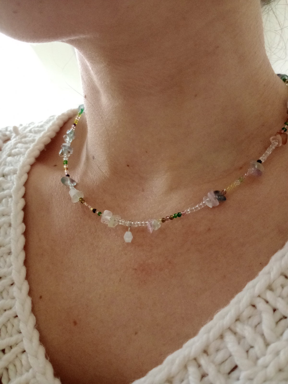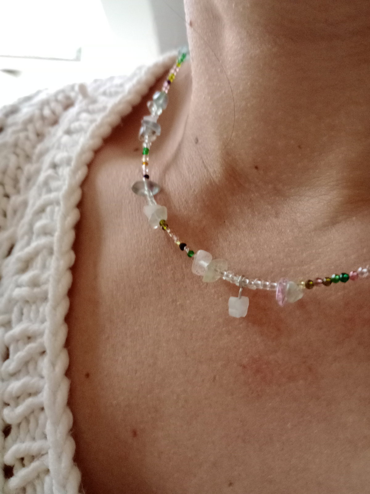 Material: Acero Quirúrgico 316L + mix amatista, Flourita y cuarzo rosa + cristales