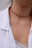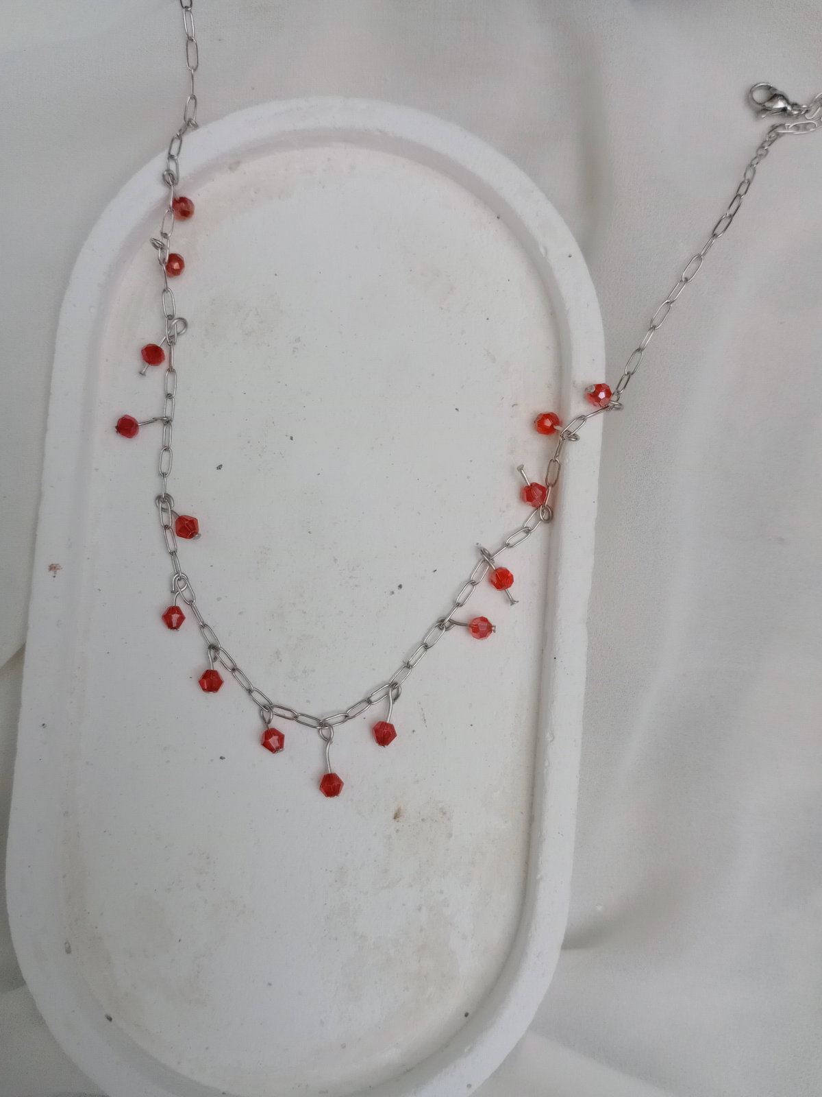 Una gargantilla delicada con cadena de acero y pequeños cristales colgantes que aportan movimiento y brillo en cada paso.