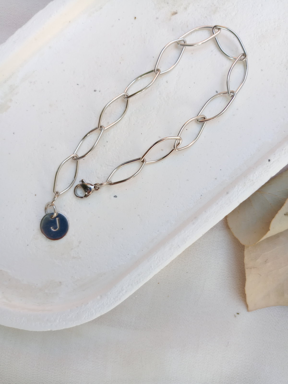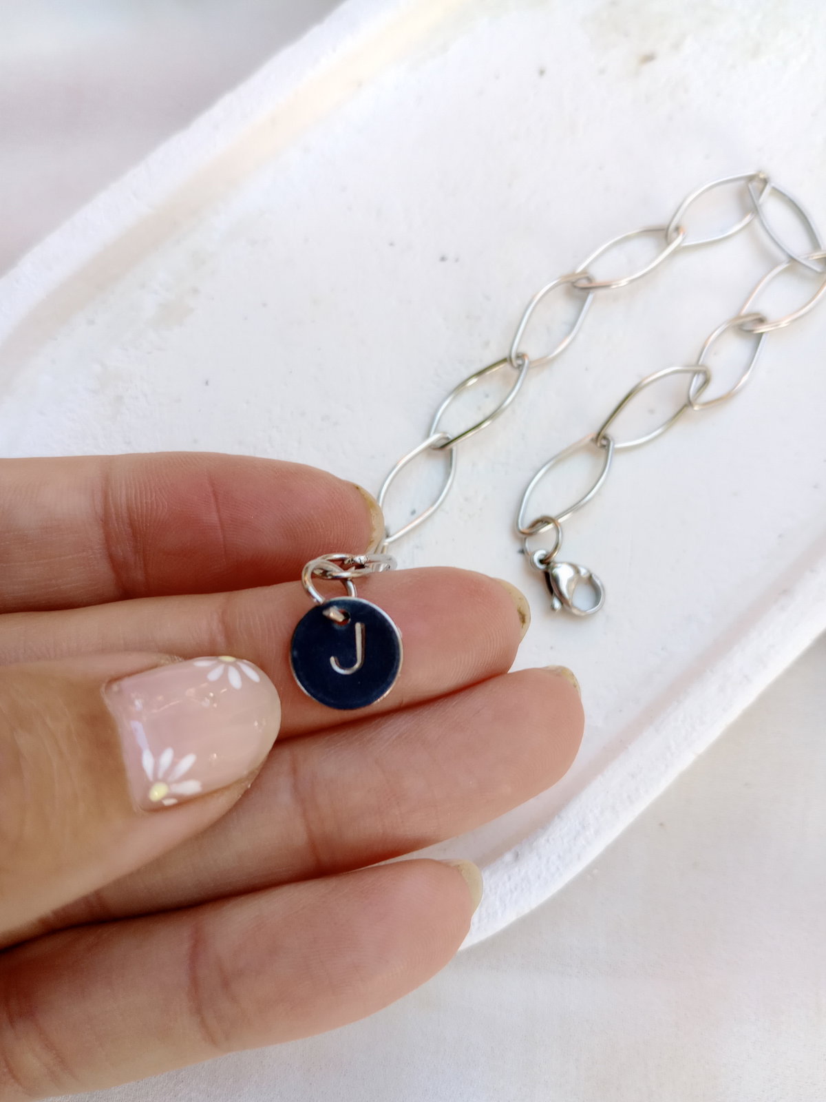 Cadena estilo eslabón alargado con dije inicial personalizado.